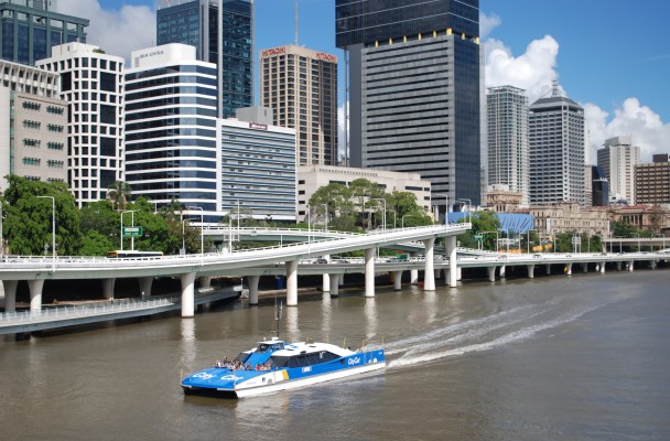 With the wind in my hair and a light occasional spray on my face, I’m rediscovering the joy of public transport by travelling on Brisbane’s fast, sleek CityCats whenever I can. Jumping aboard and travelling the river to get to where I’m going has been a great way to get around since returning to Brisbane recently after seven years living in Melbourne. CityCats run from the University of Queensland at St Lucia to the cafes of Bulimba and Tenneriffe and on to Hamilton, the last stop. There are lots of stops along the way that are worth getting off at but if you don’t, the whole length of the CityCat route takes a bit more than an hour and will cost you the princely sum of $5.20