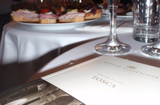 Would any visit to Vienna be complete without a night at the opera? I think not. So, off we go…and luckily it’s an easy one to follow, as it’s only my second-ever opera outing. This is Puccini’s Tosca, a tale of love and jealousy, despair and death. But I confess I’m here as much for the experience of an evening at the Vienna State Opera as I am for the music. For the chandeliers and champagne, the gowns and glamour, the soaring ceilings and sheer grandeur of it all. And the fact that we started our night out with sausage and beer at a hot dog stand behind the opera house – along with many Viennese also heading to the performance – made it even more memorable.