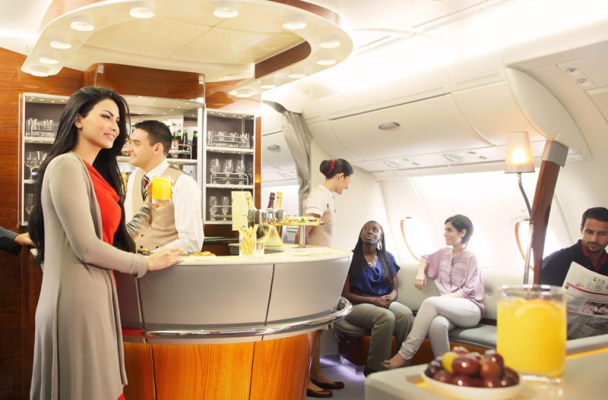 It’s all a-buzz in the bar. People are standing around, drinks in hand, chatting to strangers and the barman. I’ve stumbled on this little scene after rising from my seat in search of the loo. And it’s hard to believe I’m on a plane. But then, I’m on an A380 and I’m seeing first hand what the fuss is all about. On my Emirates flight from Frankfurt to Brisbane (via Dubai and Singapore), I’ve once again been lucky enough to be upgraded and this time the plane is even more luxurious! The A380 even has the aforementioned bar (or “Onboard Lounge”) at the back of the upper deck in Business Class, and it’s all very convivial, at least at the start of the flight. But after one drink, I’m happy to retire back to the privacy of my seat and settle in for a meal, some movies and as good a sleep as I can hope for. Comfort is everything and they don’t come much more comfortable than this. My seat even as a little private mini-bar stash of water, soft drink and snacks so I don’t have to ask for anything. If only every long haul flight could be like this…
