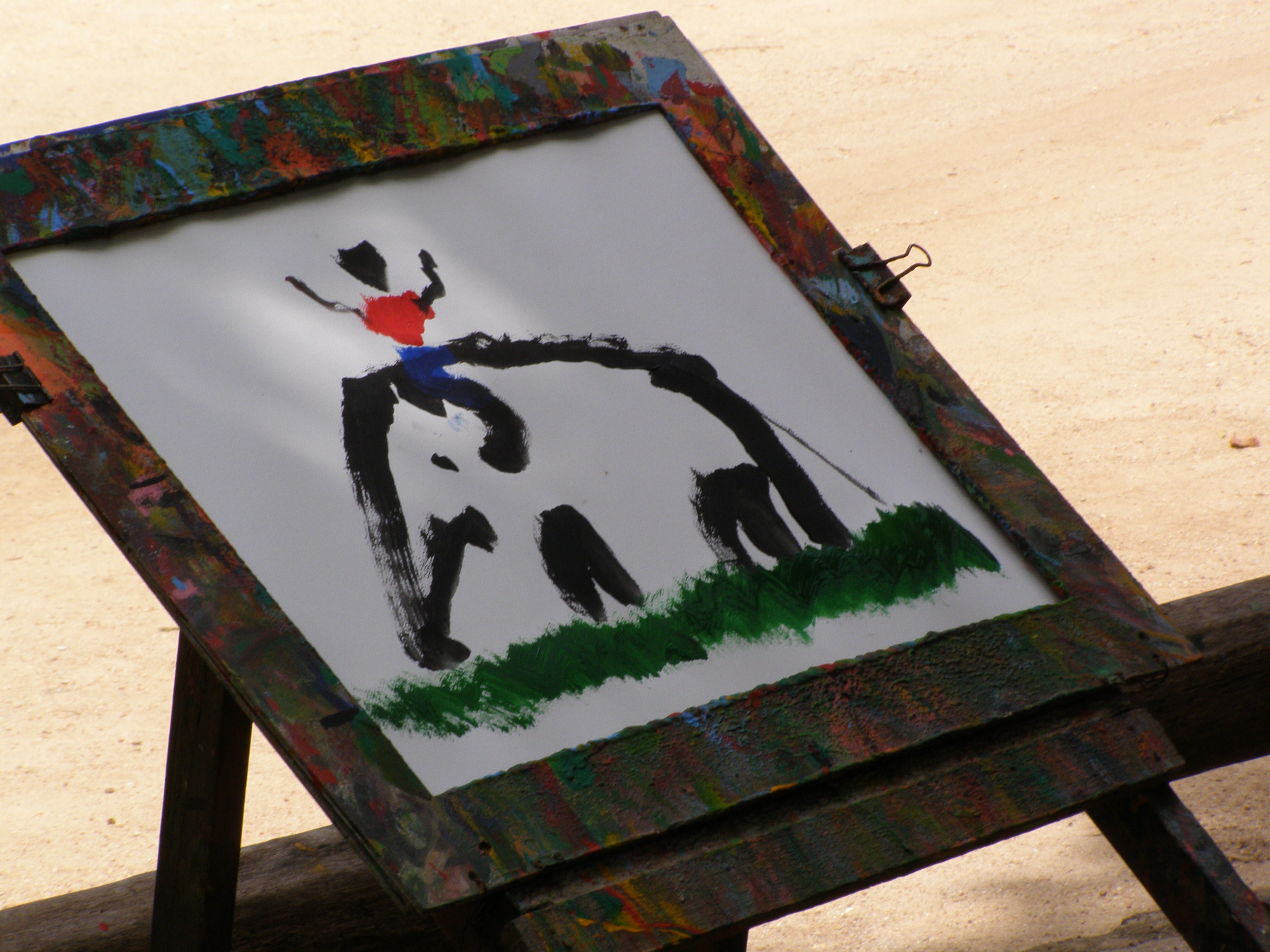 During the show, the elephants show off the skills they use in lumber work, rolling and lifting logs. Then it’s time for the fun part, as they play the angaloong (a Thai bamboo instrument) and hold paintbrushes with their trunks to create brightly-coloured pictures of themselves, flowers and trees. I’m not sure I’m keen on this…but the money raised goes to a good cause, as we’ll soon see.