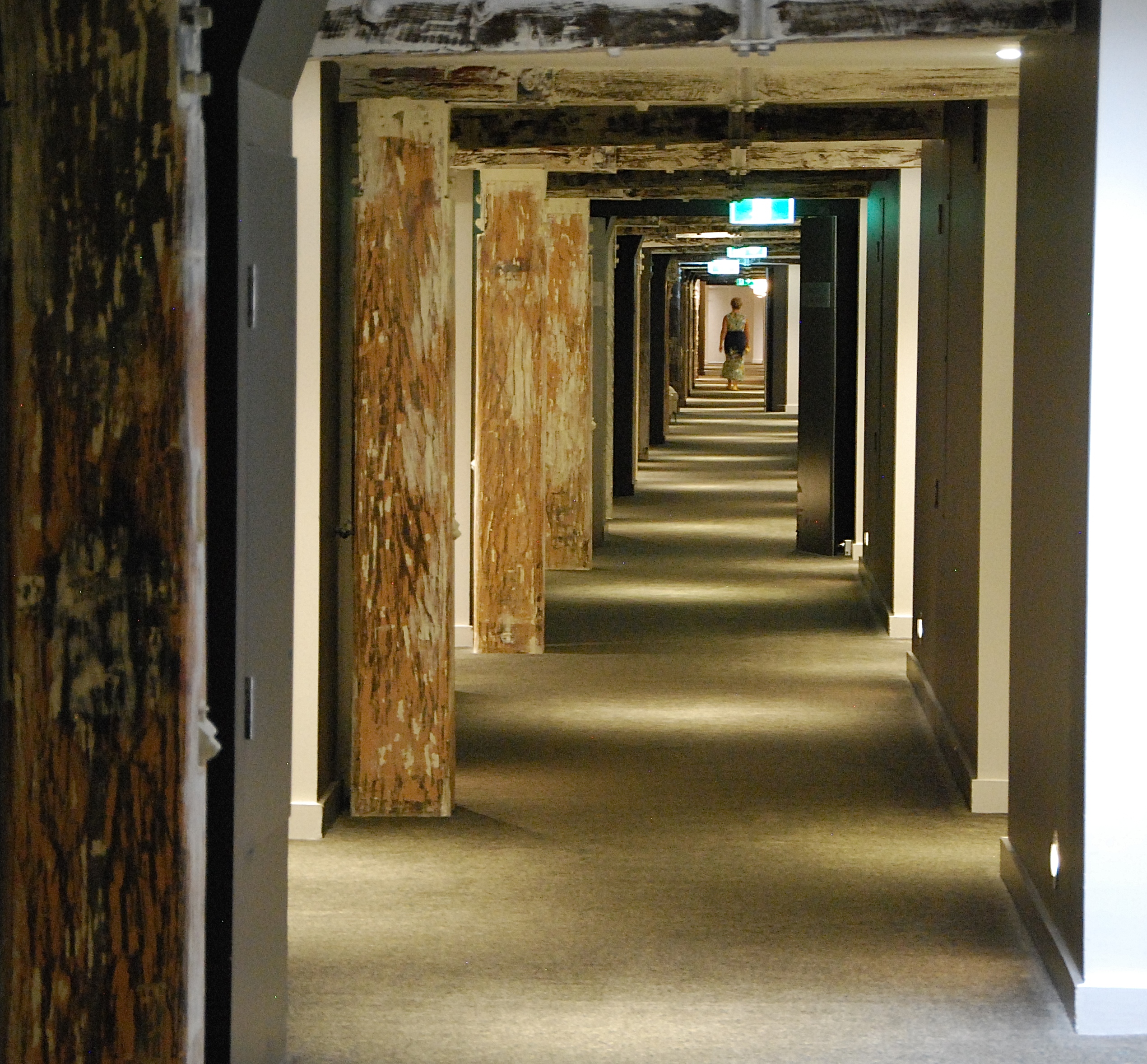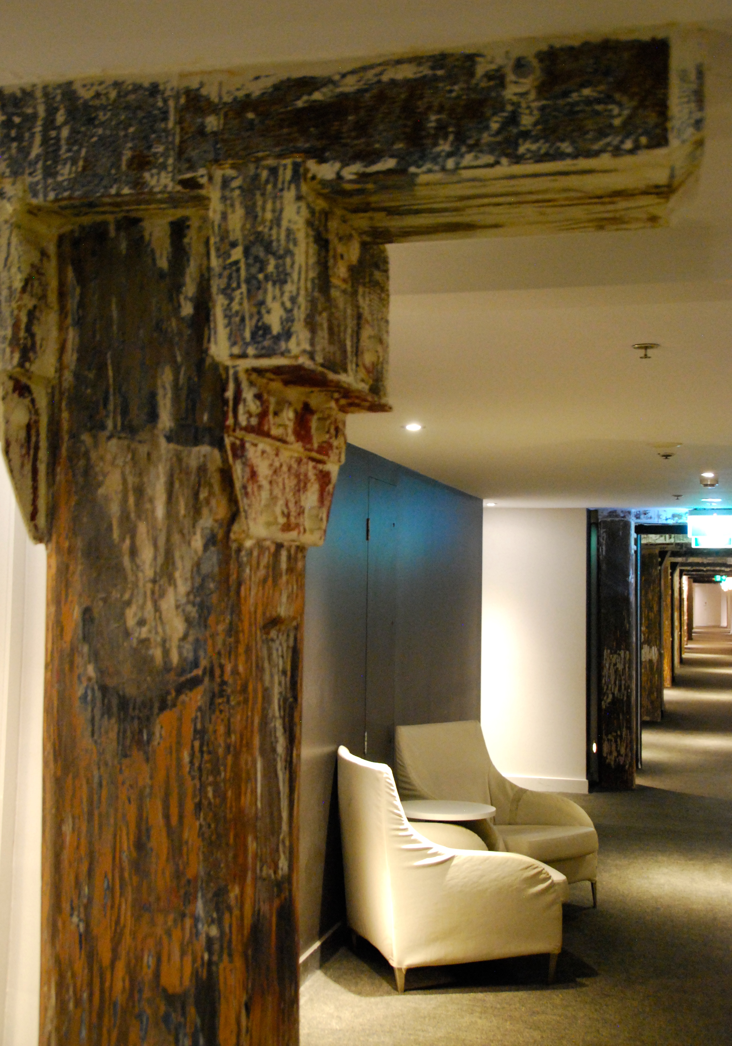 The rooms have a vaguely nautical theme, in blue and white, but it’s the corridors that I love: they feature original timber and ironwork that were once part of the historic Pier One Wharf, on which the hotel was built.