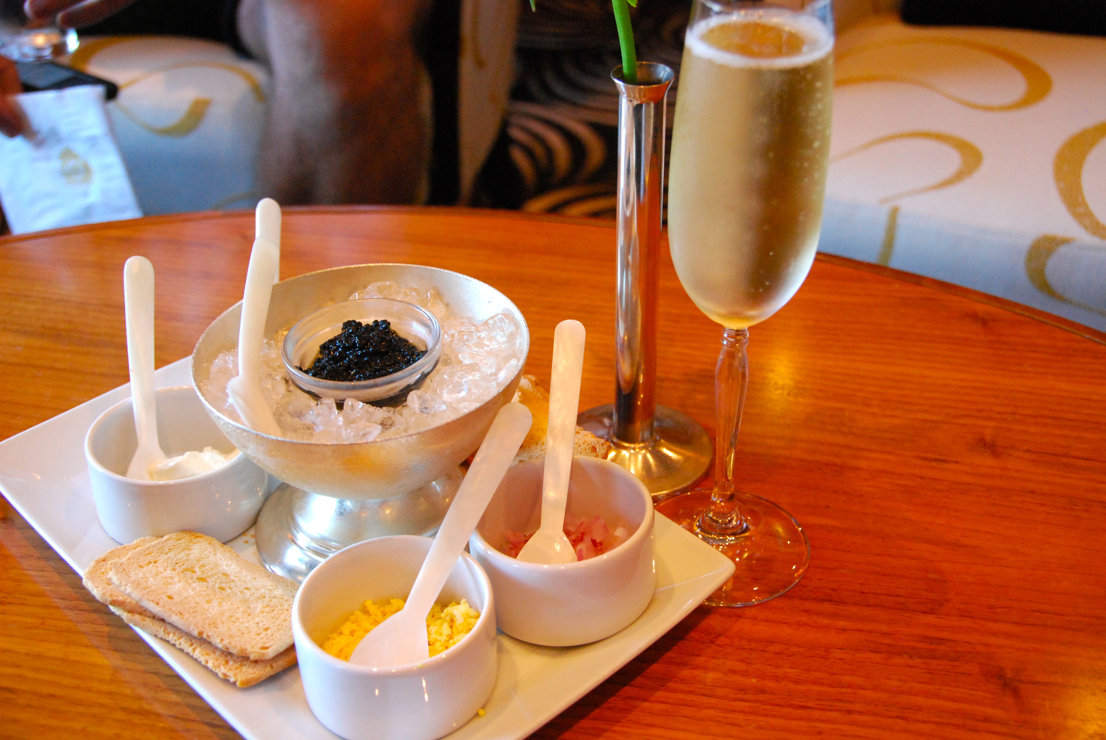 Champagne and caviar in the Veuve Clicquot Champagne Bar.