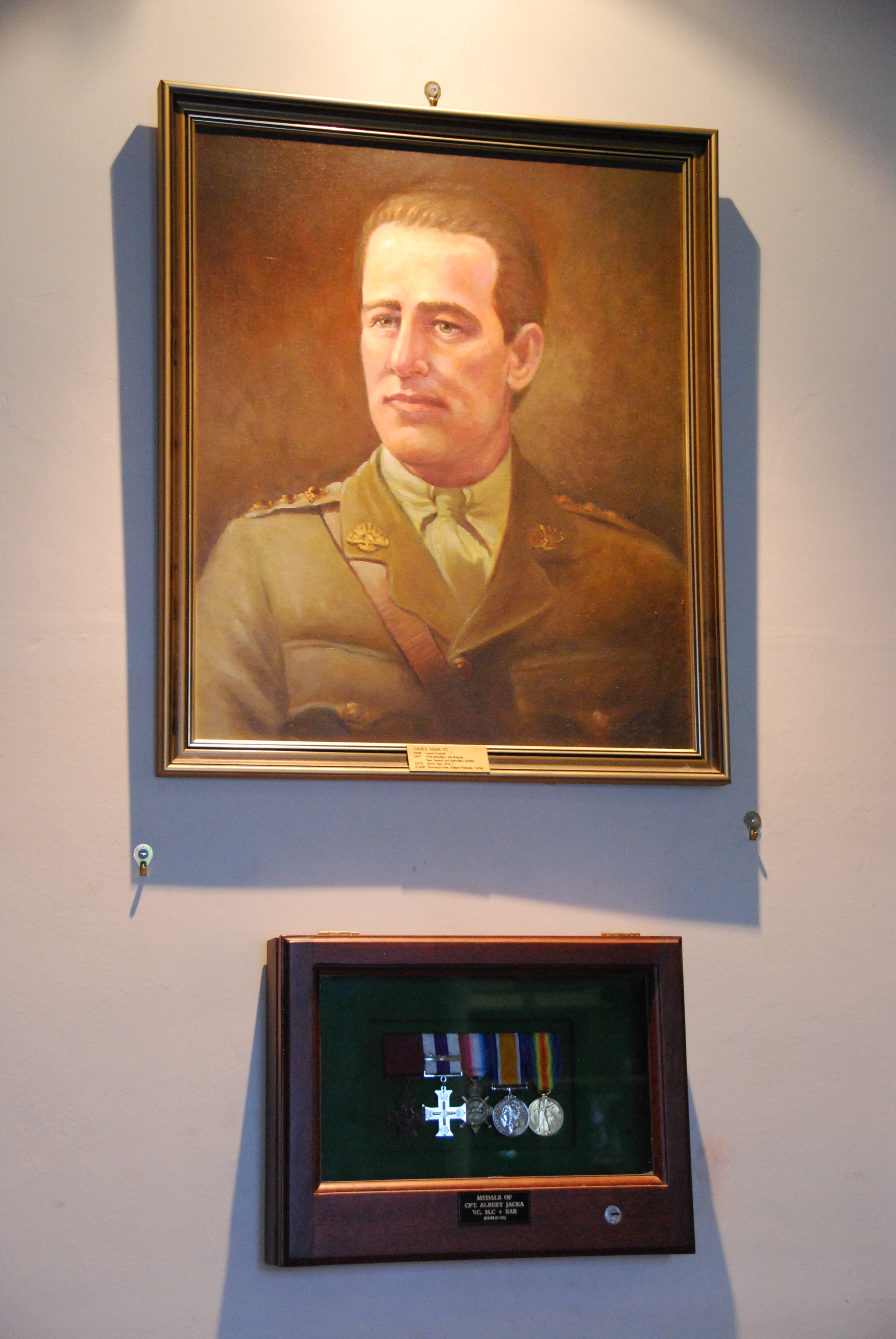 Pride of place goes to Australia’s first Victoria Cross recipient in World War I, Captain Albert Jacka (for whom nearby Jacka Boulevard is named), who was the club’s first president. Captain Jacka, who later became the mayor of St Kilda, was also awarded of the Military Cross and bar and was a national hero. He served in Gallipoli and France, but in 1918 he was gassed at Villers-Bretonneux and saw no more action. In 1929, he was elected to the St Kilda Council and a year later became mayor. But in late 1931, he became ill and died suddenly, at the age of 39. Nearly 6000 people filed past his coffin when it lay in state, and the funeral cortege, led by more than 1000 returned soldiers and watched by thousands of onlookers, made its way to St Kilda cemetery where he was buried with full military honours.