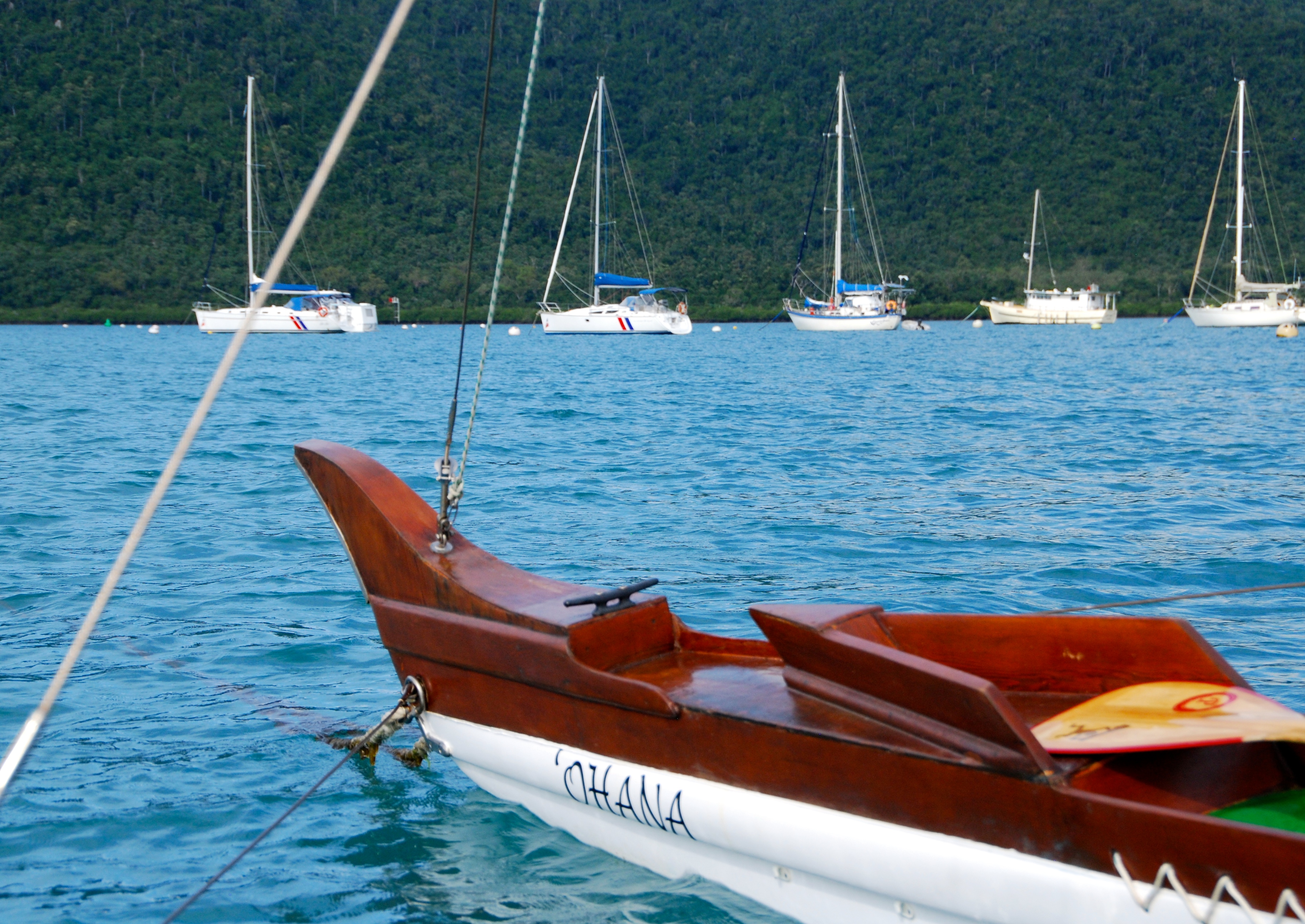 I’m in the capable hands of Stephen and Michelle Lynes, who own Whitsunday Flying Outrigger Canoe Tours and built their pride and joy, Ohana, themselves.