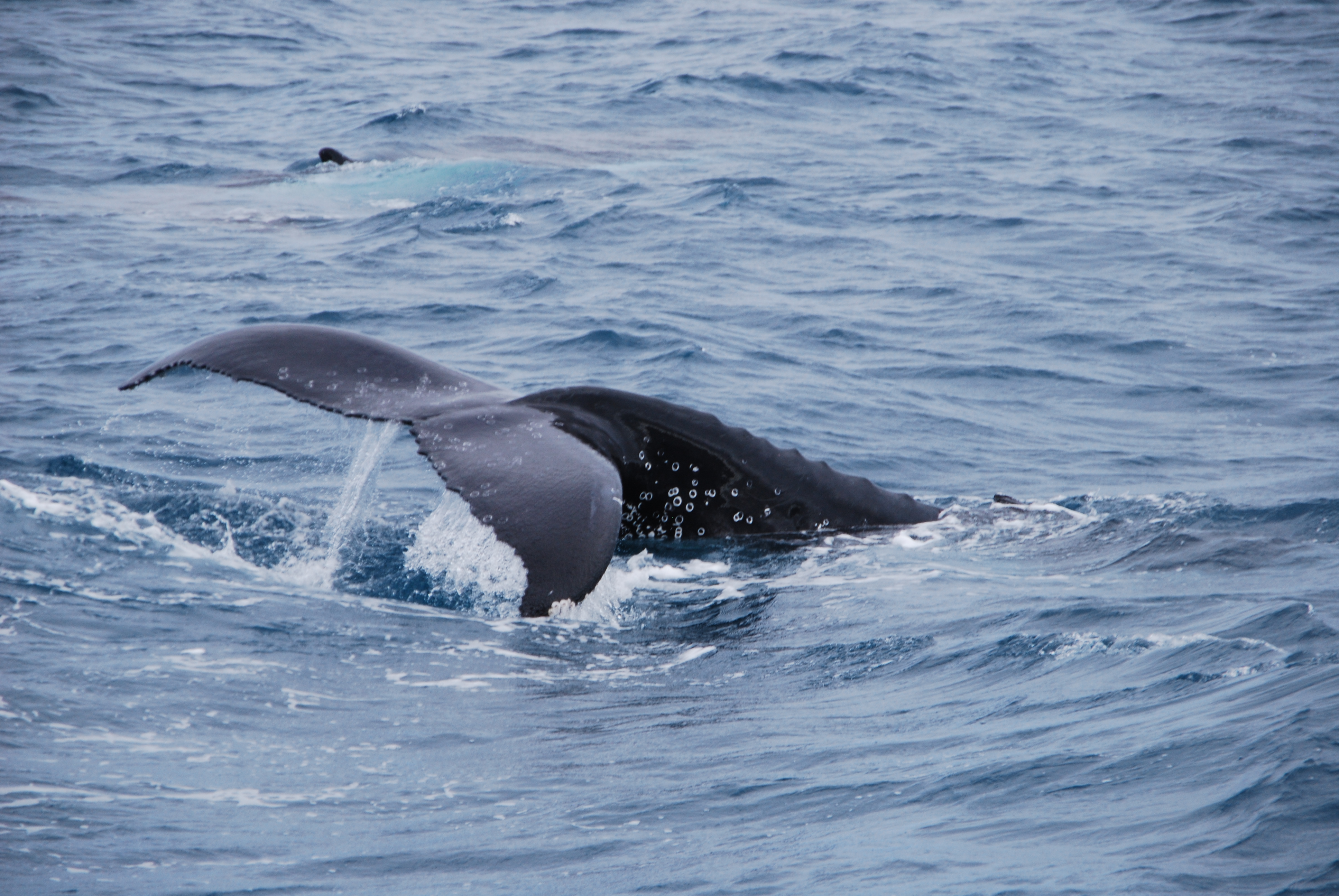 On the second day, we saw another five whales (or were some the same as the previous day?). Another unforgettable experience, with the sun shining on gleaming tails and fins, and a lot of tail-slapping. The only thing the whales didn’t do – or at least not close enough for us to really see and photograph – was breach, where they throw their whole body into the air and slap down into the water.