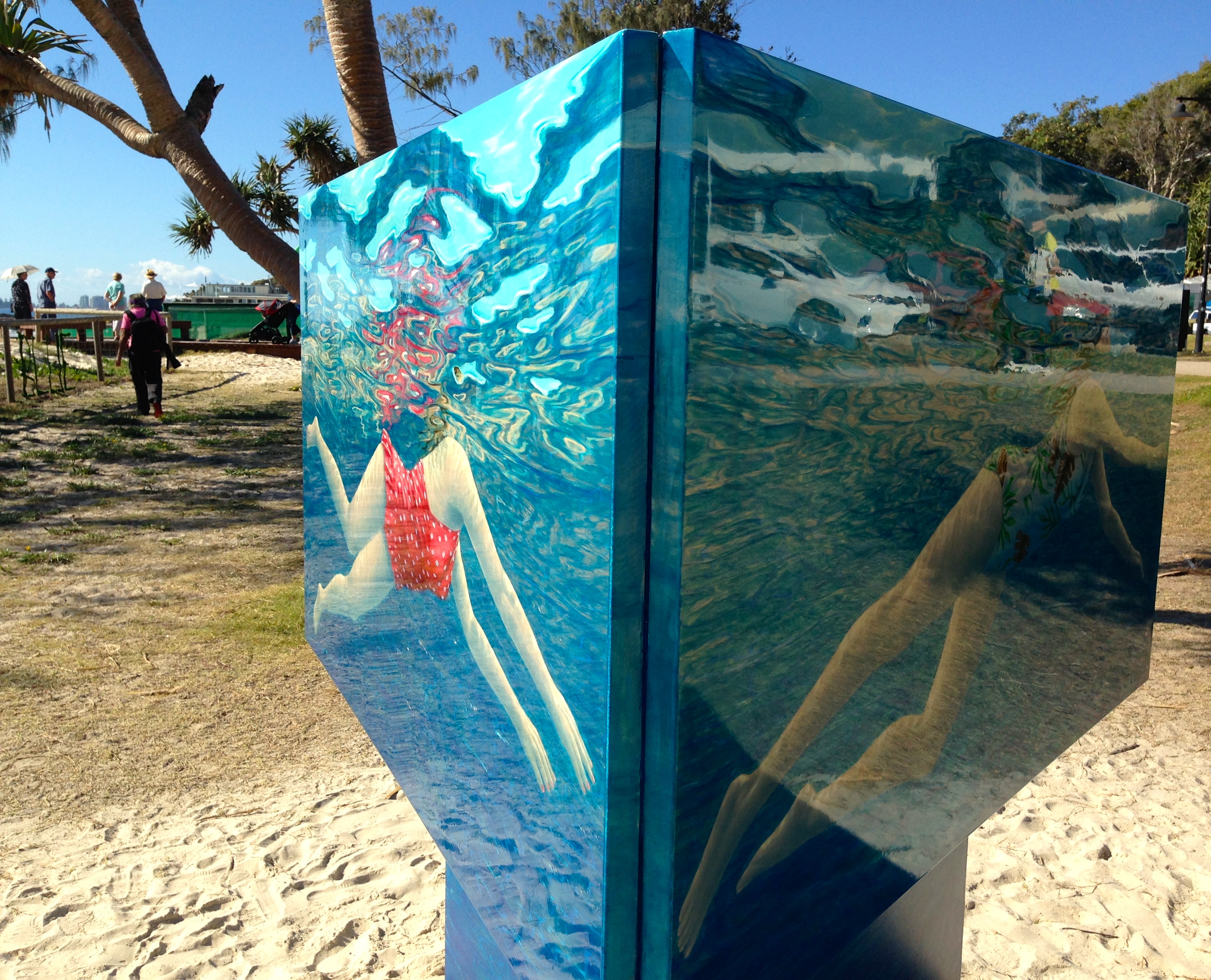 Dancers with Masks – Variations in Blue and Gold, by Rainer Schlueter (Queensland). Looking towards Currumbin Rock.