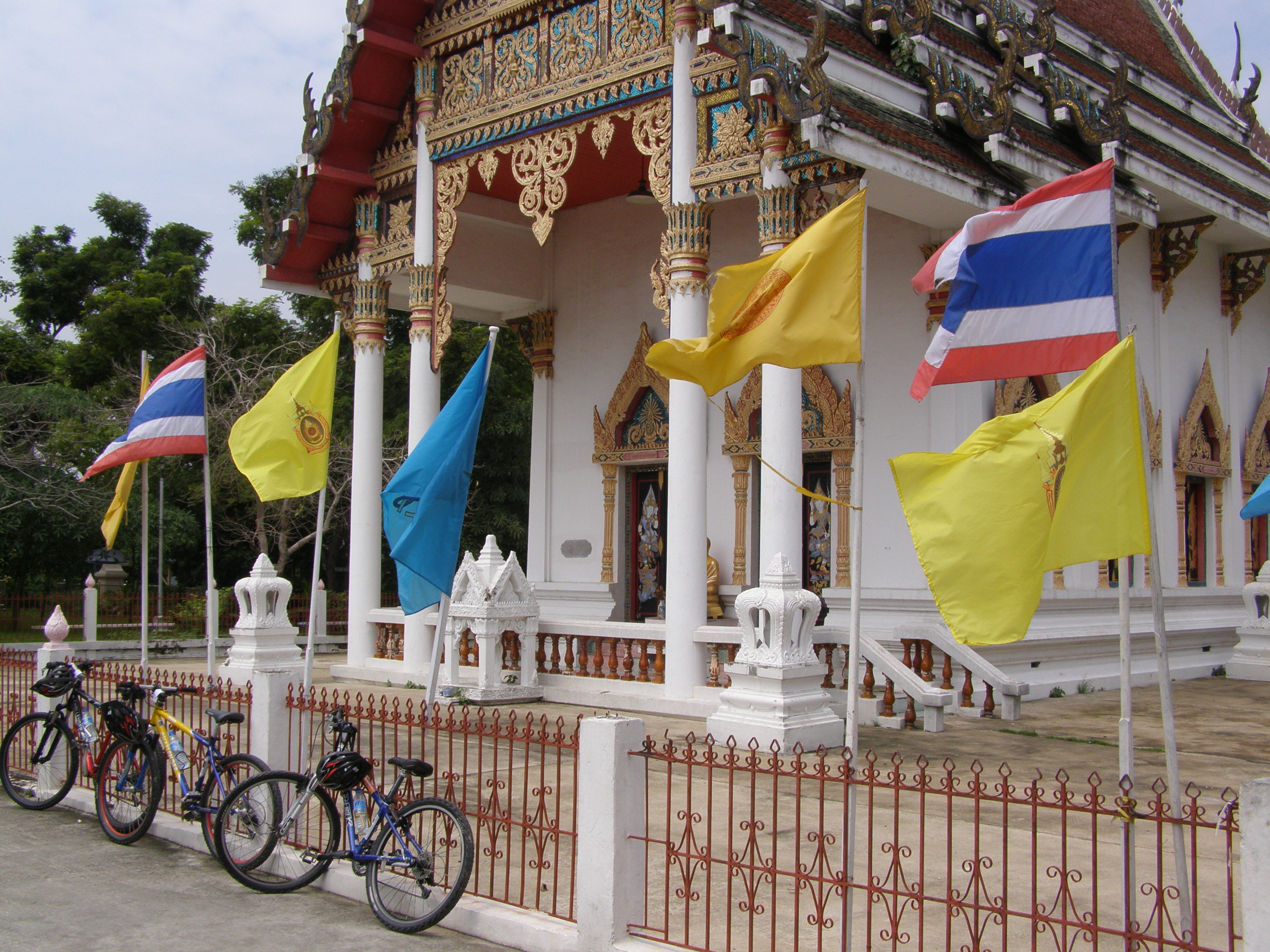 Visiting a temple while cycling in Bangkok, Thailand.