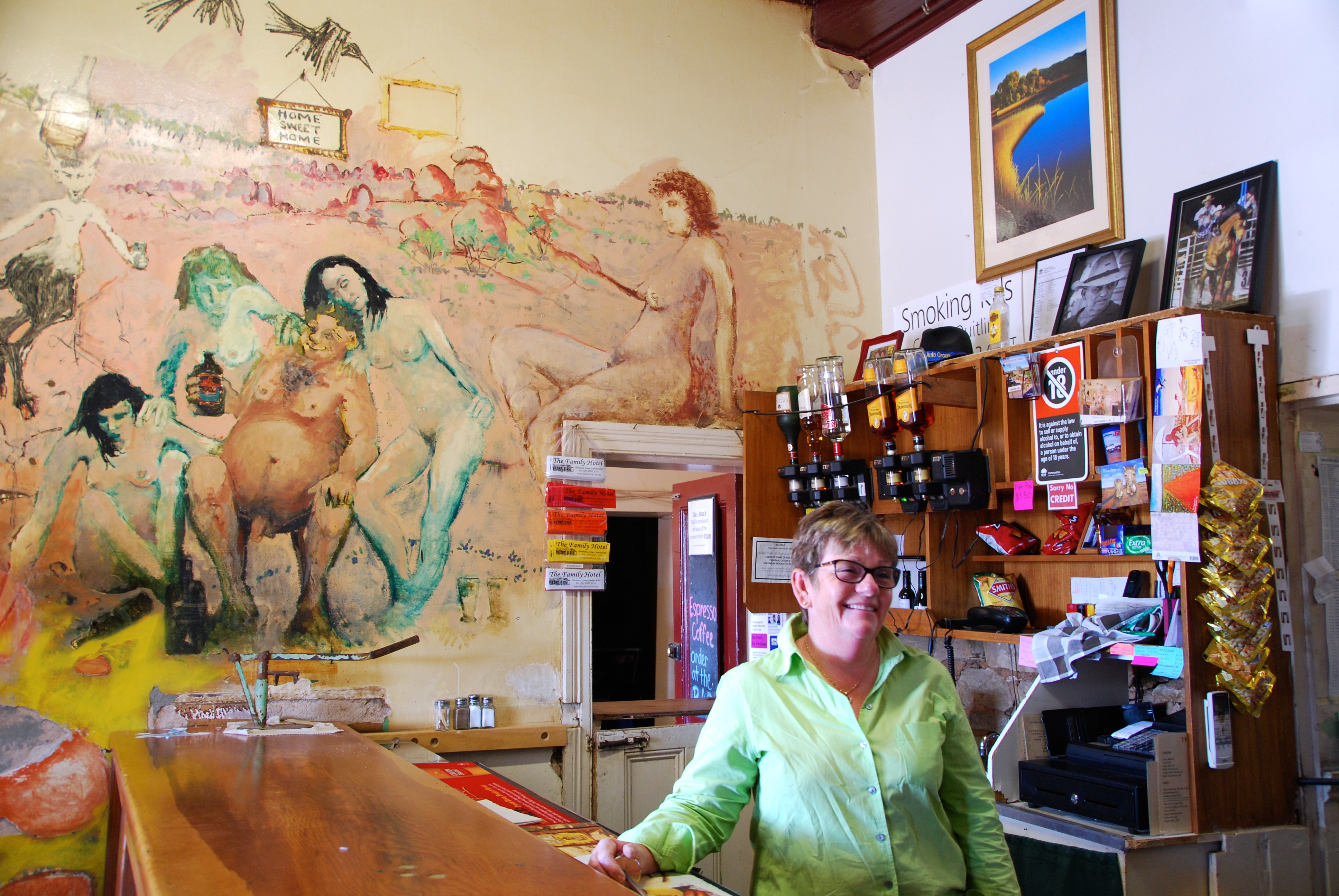 Over the years, other artists have added to the murals throughout the Family Hotel, without such controversy. If you ever get to Tibooburra, make sure you take a close look at them – the detail is intriguing and often amusing.