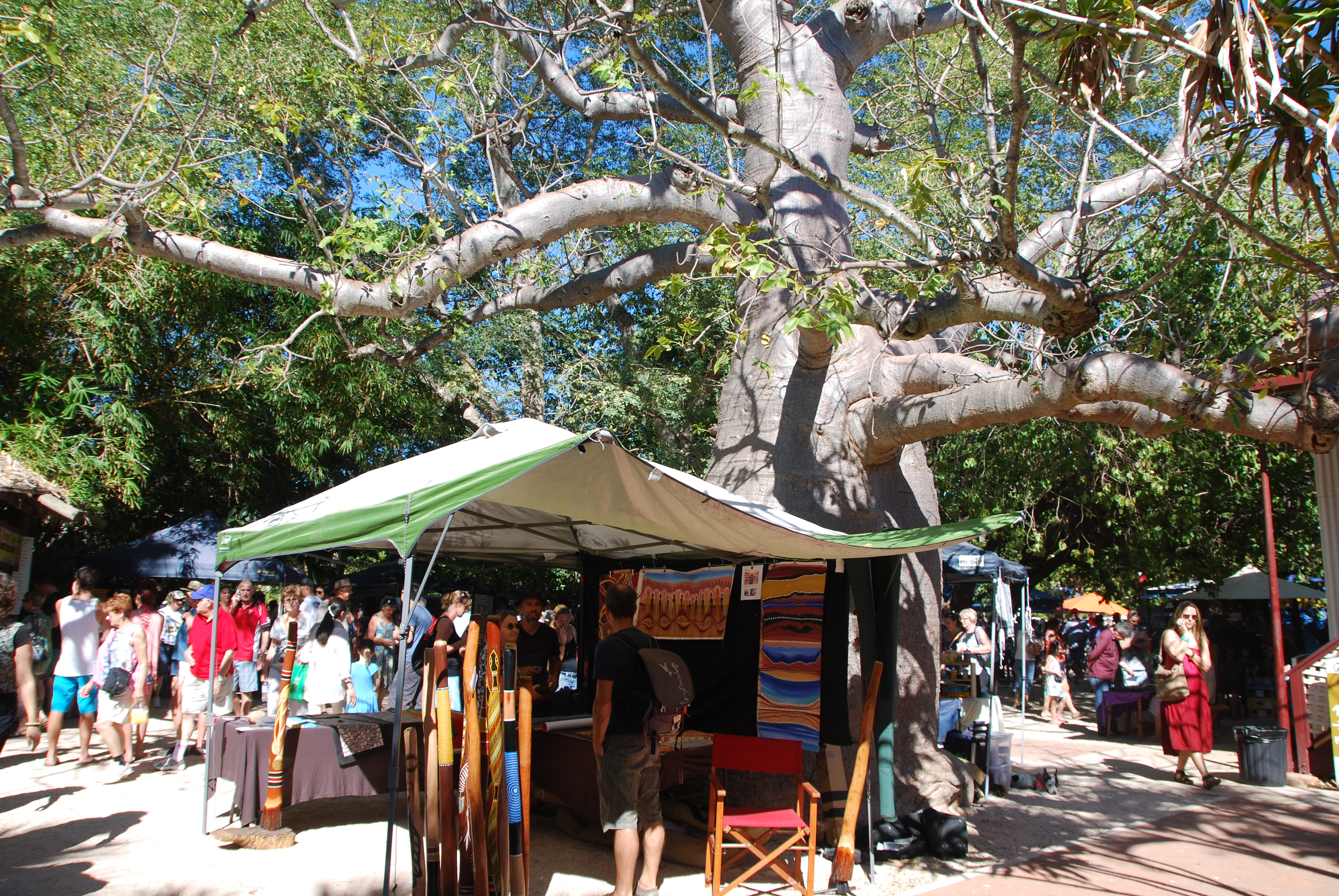 Boabs grow all around the town of Broome, the heart of the Kimberley region. The weekend Broome Courthouse Markets, are held in the shade of many fine boabs in the gardens of the historic Broome Courthouse.