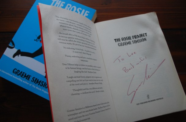 Best-selling Australian author Graeme Simsion was kind enough to sign his second book, The Rosie Effect, for me last night.
