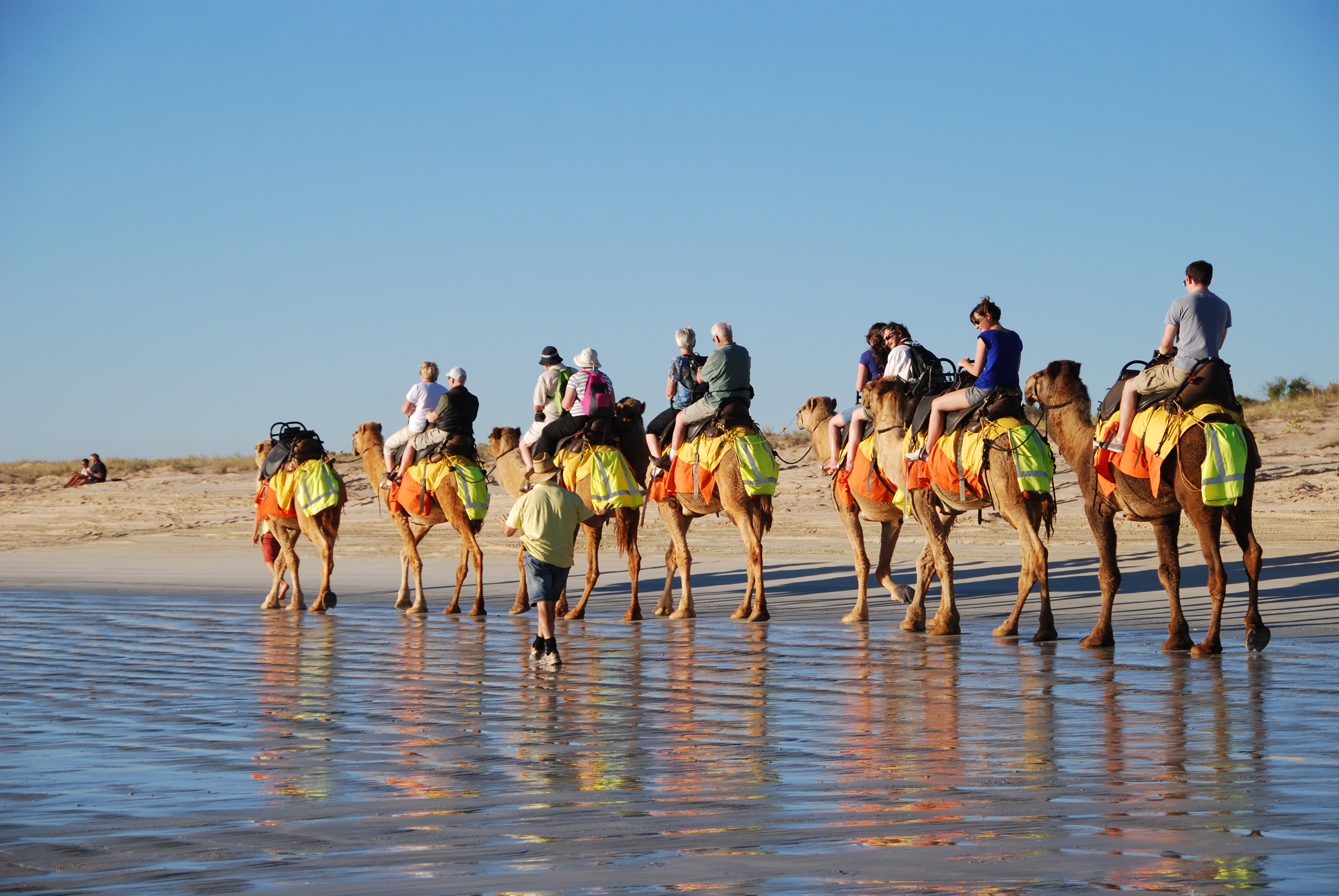 Australia has huge numbers of camels. They were brought here in the 1860s to help the explorers trying to cross the desert interiors, and a few Afghani cameleers came with them. They were so successful that about 12,000 camels arrived before the early 1900s. There are now hundreds of thousands, with Australia now having the world’s largest wild camel population, mostly in the Northern Territory and Western Australia. It’s not uncommon to see them while travelling in those areas, and there have been moves to have a cull because the numbers are so great and there are problems from time to time with wild camels coming too close to towns like Alice Springs. Believe it or not, Australia actually exports camels to the Middle East! So yes, come to Oz and have your camel ride here!