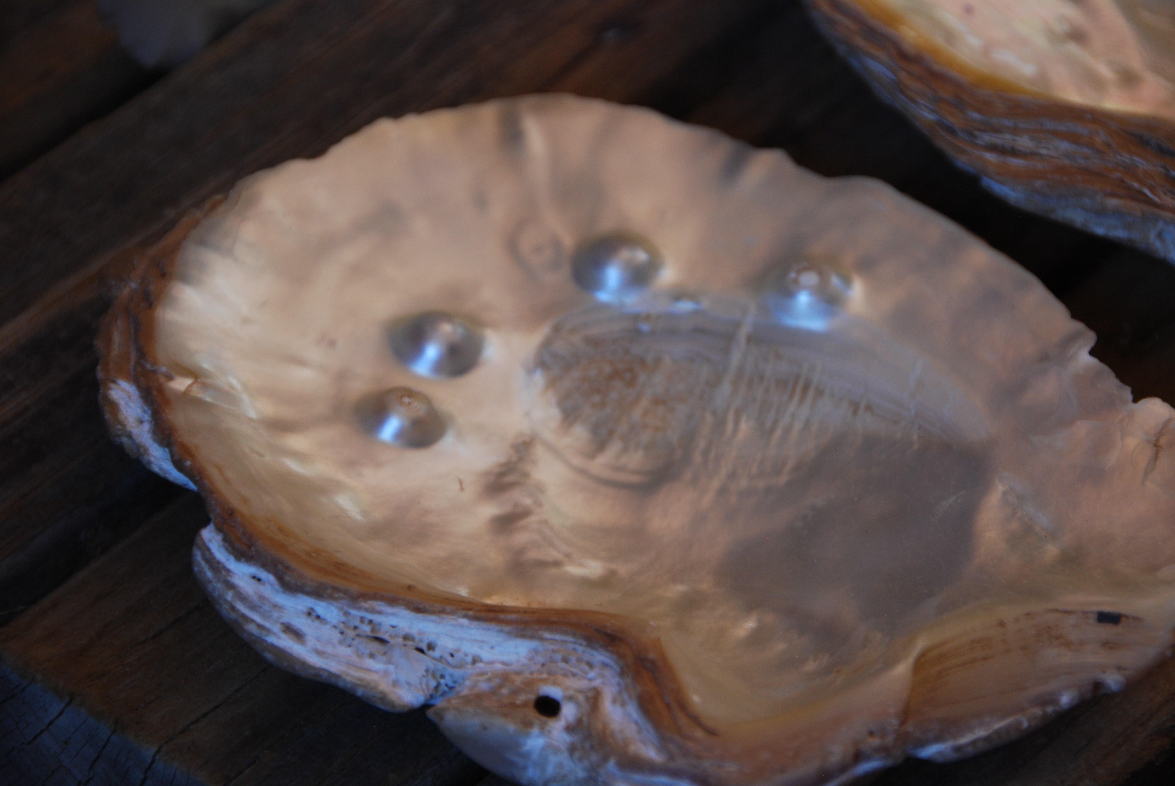 But I was wrong. The two-hour tour of the pearl farm was fascinating. Our guide Emma had a wonderful turn of phrase, and kept us entertained as she educated us. We learned how freshwater pearls are formed and what makes cultured pearls so perfectly round, as well as many of the other intricacies of pearl farming. Australian South Sea Pearls are cultured in the Pinctada Maxima oyster, and it takes two years for the oyster to coat a “spherical nucleus” (which becomes the pearl) with a substance known as ‘nacre’. A pearl can grow to anywhere between 9mm and 20mm, but those bigger than 16mm are rare – and very expensive!! South Sea pearls are known for their lustre, which is due to the thickness of coating of nacre.