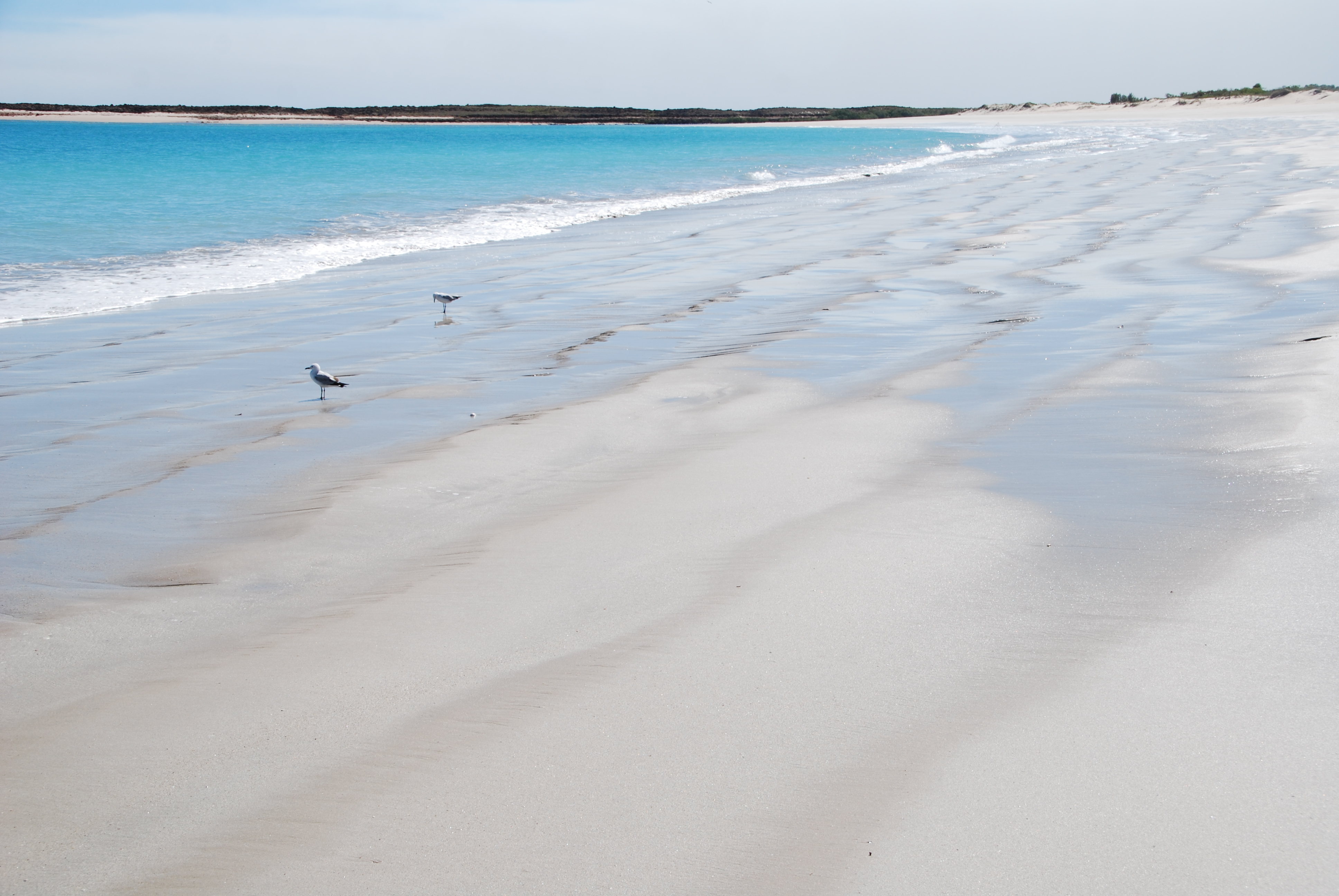 Nearing the coast, the pindan turns to white sand, and before long we were cresting dunes in the 4WD for a stop on the shores of the Indian Ocean.