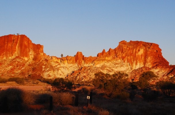 As the end of the day nears, we head back to the car park and take up a position looking across the claypan to the entrance to Rainbow Valley, ready to see the escarpment light up as the sunset. And it’s a real “wow!” moment to end a fascinating tour.