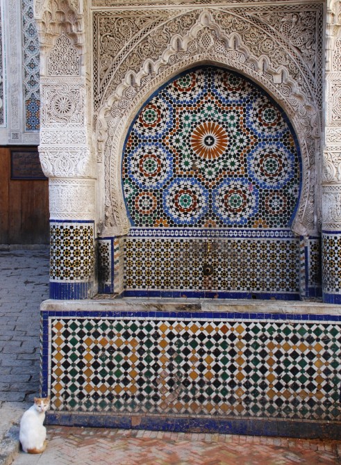 Looking for a drink…no better place to find water than at a public water fountain in Fes.
