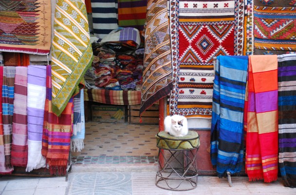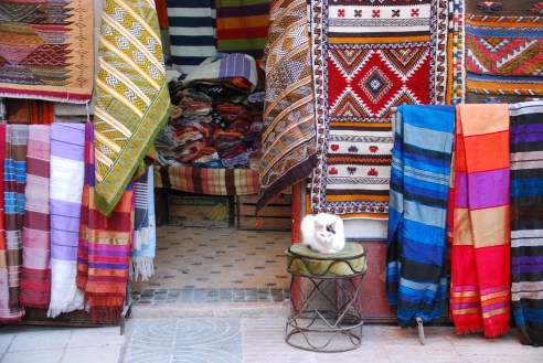 Life in a rug shop at Essaouira. You’d think he would choose a more comfy spot than the table top!