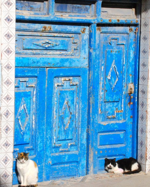 In late November, it was quite cold out of the sun, but the cats know well how to find the warm sheltered spots. These two shared a doorway in the medina of Essaouira.