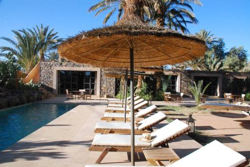 One of the most arresting features of Azalai Desert Lodge is the light plane that will greet you next to the pool. It’s certainly a talking point! There are eight stone bungalows, stylishly decorated with Berber rugs on the tile floors and a day bed tucked in an alcove behind velvet curtains. And it’s a great place to prepare for your desert detox: there’s no wifi or phone reception. You can read my longer review here.