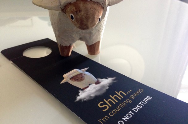 One of the more unusual “do not disturb” signs I’ve seen was at the five-star Mia Resort in Nga Trang, Vietnam, where a sliding panel beside the door could be moved to show either this eyes-wide-open look or one that looks like a fast-asleep egg. Very creative…but just a little bit spooky?