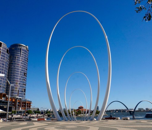 The 29 metres high Spanda at Perth’s Elizabeth Quay represents the link between river, land and sky.