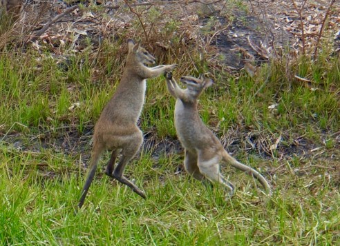 Boxing wallabies at Mount Mulligan Lodge, Queensland.