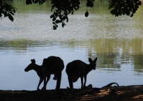 In a flurry of black and white, a small flock of magpie geese rise gracefully into the sky, surprised from the water as our boat skims…